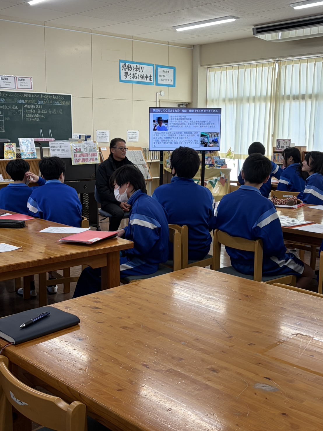 2月になりますが、弊社代表の増田が、地元相良中学校1年生への